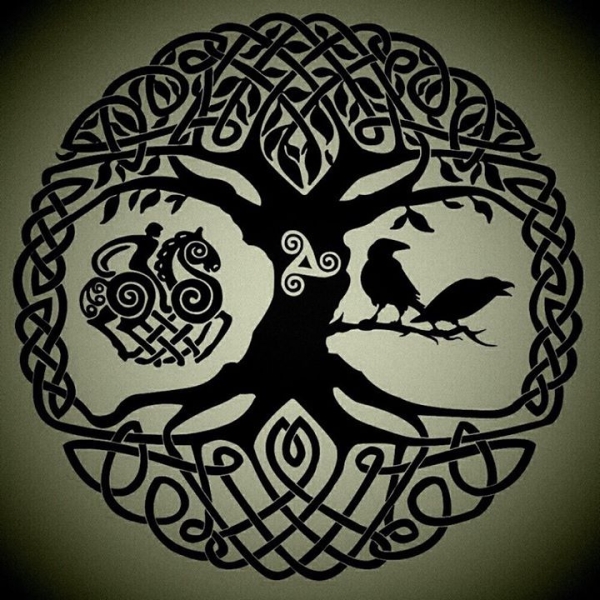 Yggdrasil Tattoo Meaning 2019. Sacred Knot Pin Series Northern Fire Designs. Black Ink Hugin And Munin Tattoo On Leg.
